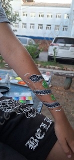 Let your creativity go wild – your preference of different pictures and styles. Leg\arm painting might be a separate decoration, or could be combined with face painting.